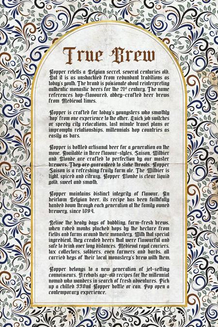 16th April 2024 Tagline Exploration, Hopper Hopper beers are a refreshing, contemporary take on the revived, ancient recipes of St. Andries Monastery | Agency: Landor